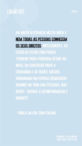🎯 Já começou a campanha “Lugar e Voz”! Na terceira semana, destacamos as invisibilidades que afetam mulheres, jovens, migrantes e pessoas em situação de vulnerabilidade. A exclusão não é neutra — é estrutural, e precisa de ser enfrentada com políticas transformadoras e escuta ativa.